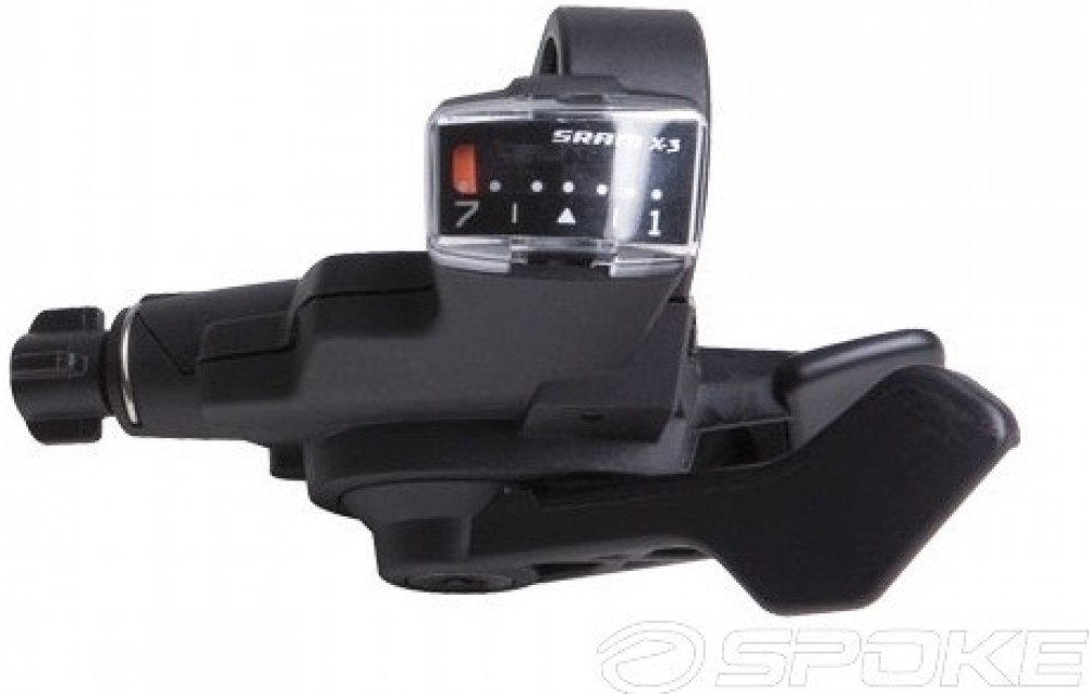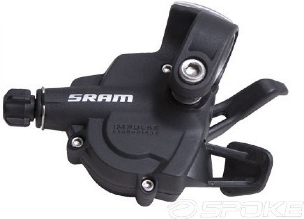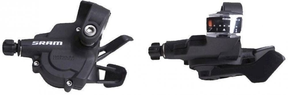 Řazení Sram X.3 Trigger Nový ergonomický design, ukazatel aktuálního zařazeného převodu, 3x7 stupňů, kompatibilní pouze se přehazovačkami Sram 1:1 (Actuation Ratio). Hmotnost 262g.