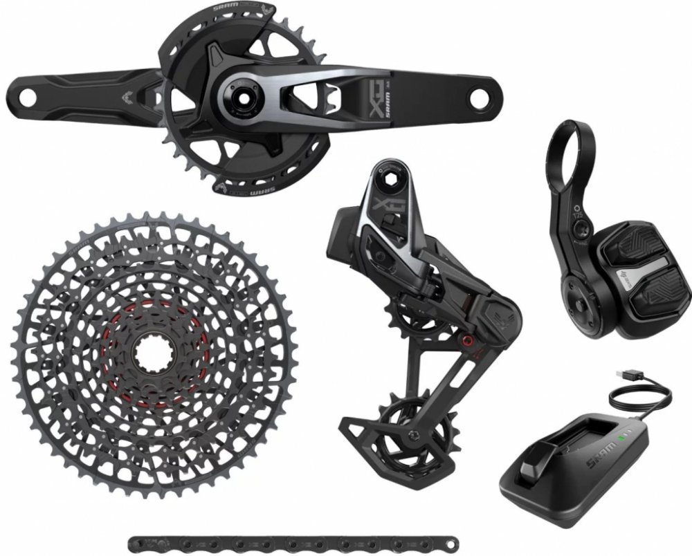 X0 T-Type Eagle V2 Transmission AXS sada (Součástí balení - přehazovačka s baterií a nabíječkou, řadič POD Ultimate, Kliky X0 Q174 CL55 DUB MTB Wide 165mm s 32zubovým převodníkem pro přímou montáž a chrániči, řetěz 126 článků, kazeta XS-1295 10-52 zubů)PlatformaX0 T-TYPE