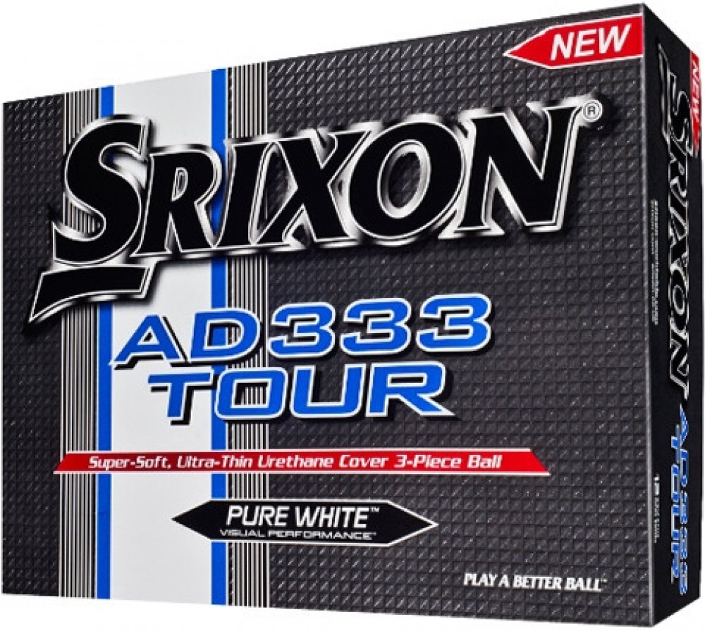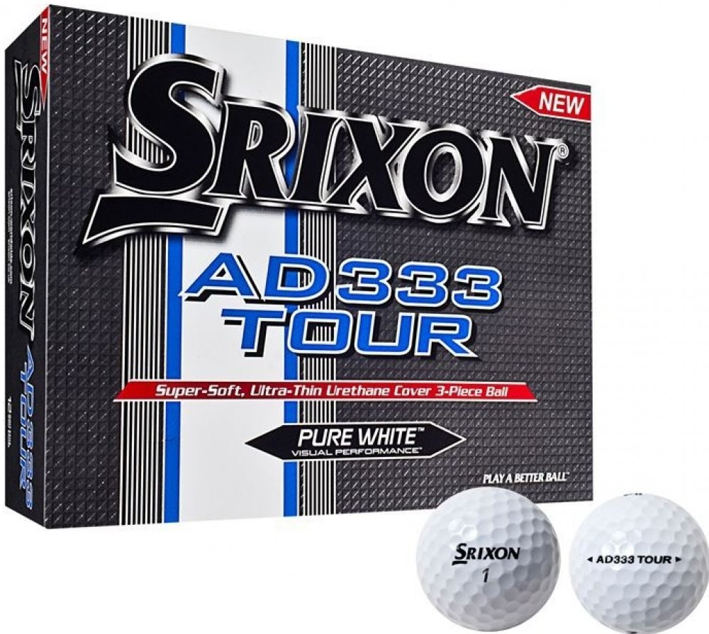 Golfové míčky Srixon AD 333 Tour patří mezi míčky, které musíte vyzkoušet. Tyto třívrstvé golfové míčky jsou doporučovány hráčům se středním a nízkým hendikepem, kteří rádi používají golfové míčky s více vrstvami. Tyto míčky poskytují skvělou kontrolu vzdálenosti a velmi příjemný pocit ze hry. Ideální jsou tyto míče pro hráče s rychlostí švihu kolem 80 mil/h (130km/h). Tenká vnější vrstva minimalizuje energetické ztráty, které tak mohou být přeneseny do jádra míčku, čímž se dosáhne delšího doletu. Střední vrstva míčku je z ionomerového materiálu, který disponuje ideálními vlastnostmi pro přenos energie do jádra, čímž zvyšuje kontrolu nad míčkem. Rotace míčku je zaručena 324 dimply z urethanového materiálu.