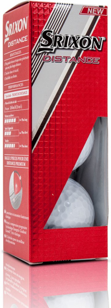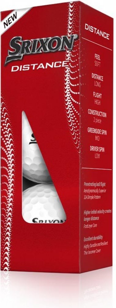 Výrobce golfových míčků SRIXON je znám výrobou dobrých a kvalitních míčků, které lze doporučit zejména hráčům s nízkým a středním handicapem. Díky těmto míčkům můžete velmi dobře kontrolovat vzdálenost odpalu a současně mít příjemný pocit ze hry. Tyto golfové míčky lze doporučit také těm hráčům, kteří mají nízkou rychlost švihu. Míčky SRIXON Distance jsou dvouplášťové míčky, u kterých vnější tenčí vrstva minimalizuje energetické ztráty a umožňuje tak maximální možné množství energie přenést do jádra, a tím docílit delšího doletu. střední vrstva míčku je vyrobena z inomerového materiálu, který přenáší danou energii do jádra a tím zvyšuje kontrolu nad míčkem. Rotace míčku je dosahováno 324 dimply z urethanového materiálu.