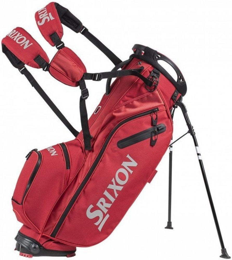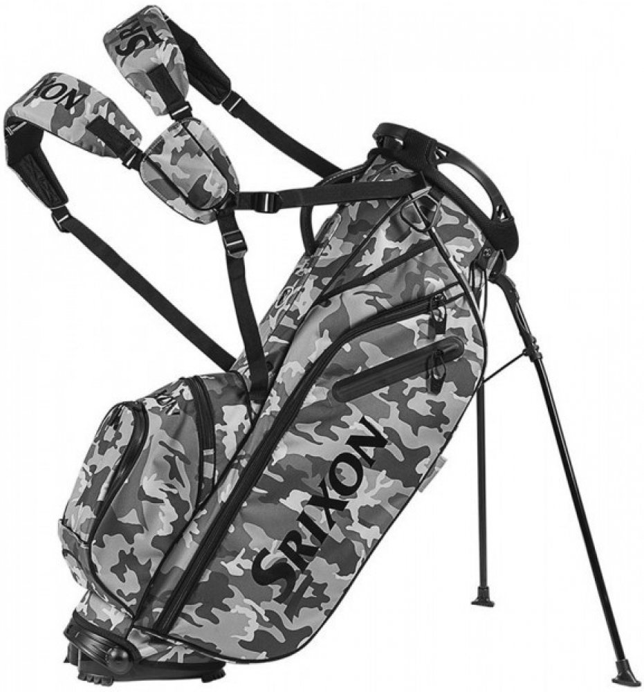 Elegantní, moderní stand bag s nožičkami, určený na nošení na zádech.