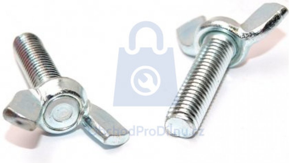Křídlové šrouby, americká forma, DIN 316, ocelové s povrchovou úpravou bílý zinek. Křídlové šrouby lze při montáži utahovat rukou a není tak potřeba nástrojů k utažení šroubu. Šrouby se vyrábějí od průměru závitu M5 až M12 v různých délkách a splňují technickou normu DIN 316.Rozměrové varianty pozinkovaných křídlových šroubů, aktuální ceny a dostupnosti naleznete v tabulce výše. Na všech sloupcích, které obsahují zelenou šipku, je možné vyfiltrovat patřičný údaj, což značně zpřehledňuje zobrazenou tabulku. Křídlové šrouby DIN 316 můžete nakoupit v maloobchodním i velkoobchodním balení, u maloobchodního balení může být definováno minimální odběrné množství.Pokud je aktuální dostupnost výše některé z výše nabízených variant Na dotaz, poptejte nás prosím, v co nejkratší lhůtě Vám poskytneme cenovou nabídku.