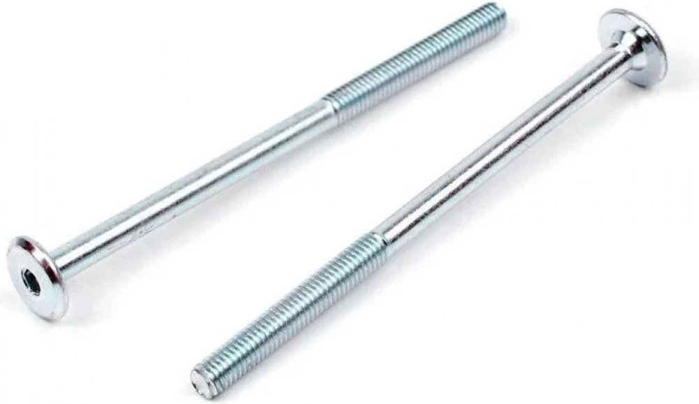 Šroub nábytkářský, plochá hlava 15mm, typ BD, šestihran, rozměr M6 x 90, zinek bílý