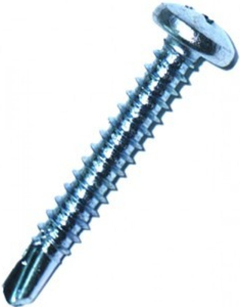 Válcovaný ocelový samovývrtný a samořezný šroub pro konstrukční použití s půlkulatou hlavou. Povrchová úprava bílým galvanickým zinkem. Vyrobeno podle DIN 7504N.
