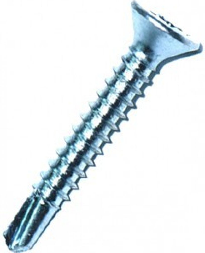 Válcovaný ocelový samovývrtný a samořezný šroub pro konstrukční použití se zapuštěnou hlavou. Povrchová úprava bílým galvanickým zinkem. Vyrobeno podle DIN 7504P.