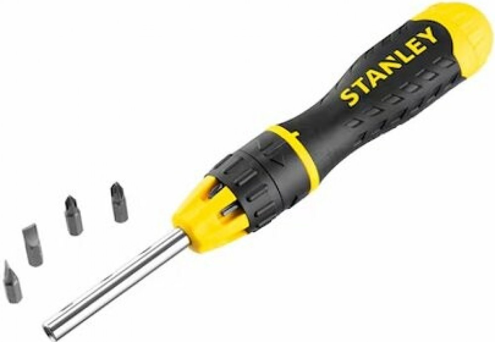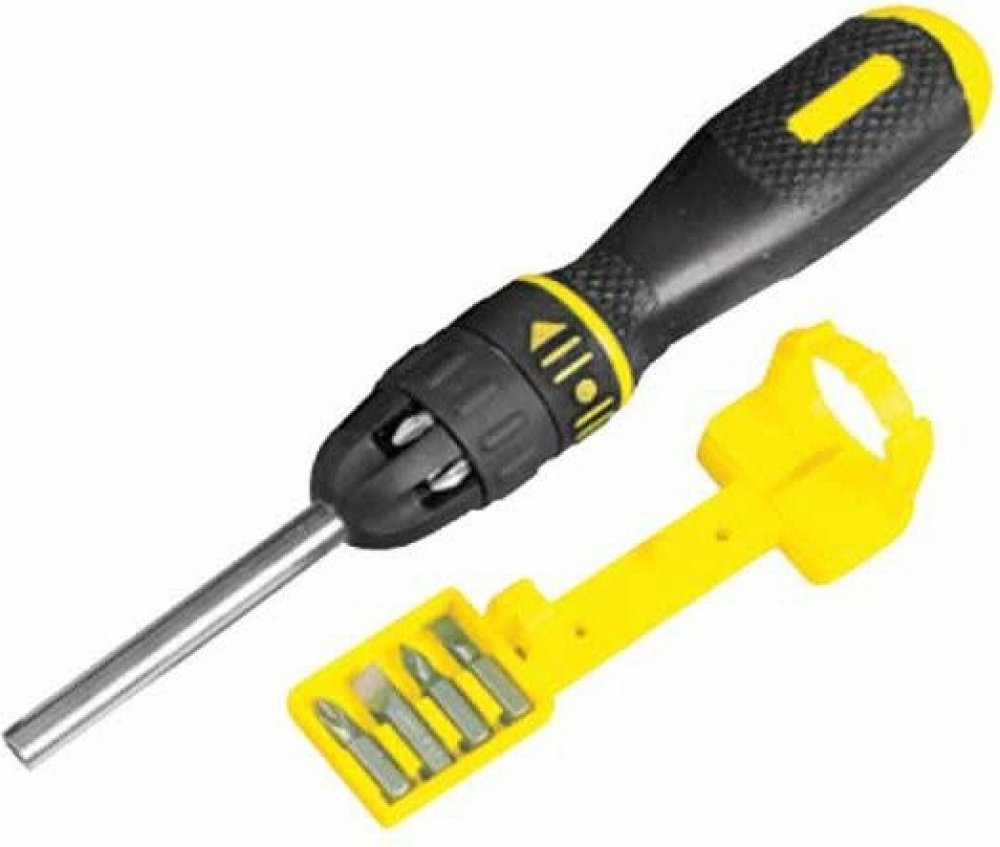 Šroubovák ráčnový s bity 11ks Stanley 0-68-010 Vícebitový ráčnový šroubovák s možností zablokování a 10 bity. 1/4" patentovaný, viditelný a bezpečný systém pro zavěšení na stěnu snadno přístupný a bezpečný úložný systém na bity s pružinovým mechanismem pro snadný přístup magnetický držák bitů v dříku trojhranná bimateriální rukojeť s vroubkováním pro pohodlné držení chromovaný ocelový dřík odolný proti korozi přepínací ráčnový mechanismus s možností zablokování Sada obsahuje: ploché: 5 mm, 6 mm PH: 1, 2 PZ: 1, 2 torx: T10, T15 čtyřhranné S: 1, 2 ráčnový šroubovák s držákem bitů