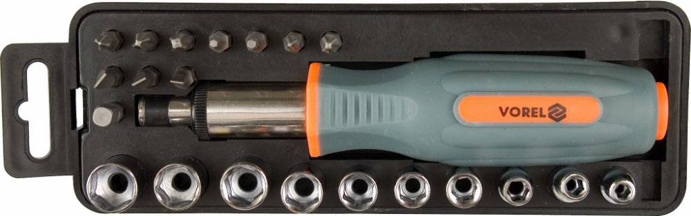 Šroubovák ráčnový s příslušenstvím 22 ks, VOREL