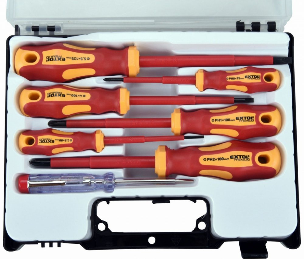 Šroubováky elektrikářské se zkoušečkou, sada 7ks, 3x(-),3x(PH), CrV, EXTOL PREMIUM