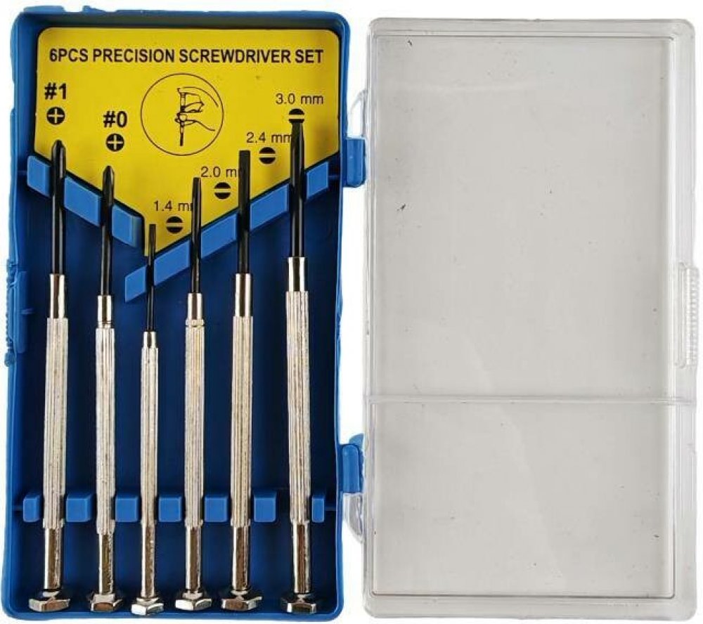 - plochý šroubovák: 1,4 mm, 2 mm, 2,4 mm, 3 mm