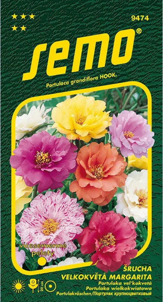 Šrucha velkokvětá Margarita Mix je poléhavá letnička s dužnatou lodyhou a charakteristickými čárkovitými listy, která dorůstá do výšky cca 20 cm.