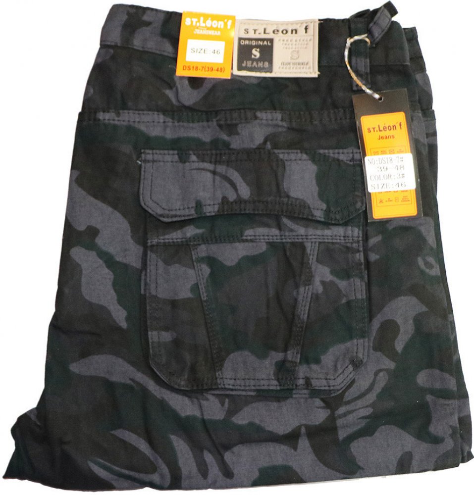 Kalhoty pánské kapsáče v barvě maskáče v nadměrné velikosti.