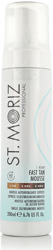 St. Moriz Professional Fast Tan Mousse. St. Moriz Professional Fast Tan Mousse 200 ml – rychleschnoucí samoopalovací pěna, která umožňuje dosáhnout přirozeného opálení za krátkou dobu. Díky lehkému složení je aplikace snadná a rovnoměrná, přičemž výsledný odstín lze přizpůsobit podle doby působení. Ideální pro všechny typy pokožky, které chtějí okamžitě získat zdravý bronzový tón. Vlastnosti: Rych