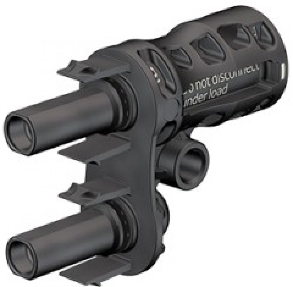 Slučovací konektor pro propojení fotovoltaických panelů se střídačem nebo pro propojení fotovoltaických panelů. Konektor je rozpojitelný a umožňuje provést dodatečné změny v zapojení fotovoltaického systému.