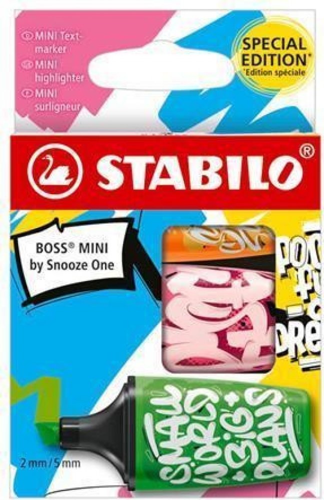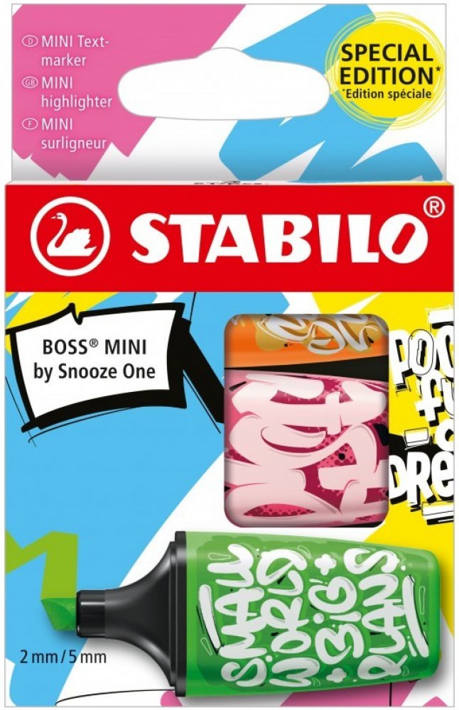 Kapesní zvýrazňovače inspirované graffiti z edice STABILO BOSS MINI Snooze One.