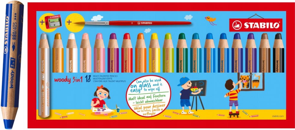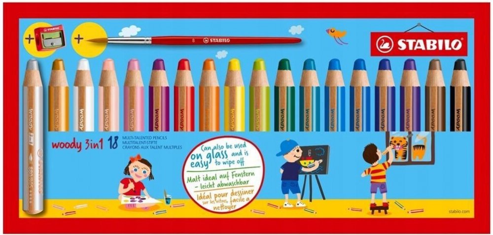 Pastelky STABILO jsou magickým prvkem, který rozjasní dny a přinese do života špetku uměleckého zážitku. Jejich kulatý tvar zajistí, že manipulace s nimi bude snadná. Nabízené pastelky pro nejmenší slouží ke kreslení již od útlého věku. Mohou je používat jak praváci, tak leváci. Jejich speciální ergonomický tvar nabízí správný úchop, a to zejména u malých dětí. Nadchnou všechny od 3 let. Patří mezi nejoblíbenější výtvarné nástroje a hodí se především na papír, sklo, kov a dřevo. Dojde-li k pokreslení pracovní plochy, snadno povrch omyjete vodou. Tělo pastelek vyrobené z kvalitního dřeva dodává celkovému designu přírodní vzhled. Jejich tuha poskytuje odolnost proti lámání, proto jim nebude vadit ani přílišný tlak či pád na zem. Papírové balení ukrývá 18 pastelek STABILO. Zásadní vlastnosti pastelek STABILO woody 3 v 1, 18 barev s ořezávátkem a štětcem STABILO pastelky poslouží k realizaci kreativních nápadů Díky kulatému tvaru je práce s nimi maximálně pohodlná Používat je mohou jak praváci, tak i leváci...