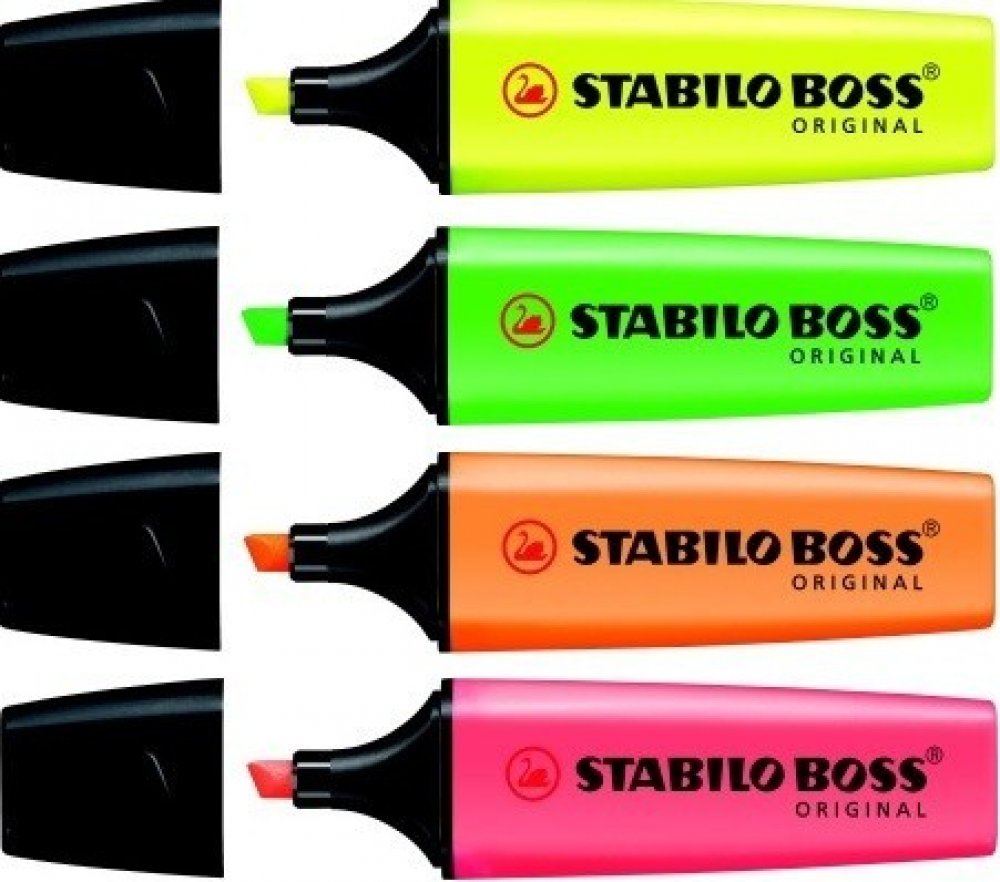 Od svého uvedení na trh v roce 1971 je STABILO BOSS ORIGINAL stále nejoblíbenějším a nejprodávanějším zvýrazňovačem v Evropě. Nabízí 4 hodinovou ochranu proti vysychání pro ještě větší koncentraci na práci. Je znovunaplnitelný a k dostání v 9 fluorescenčních barvách a 6 pastelových odstínech!