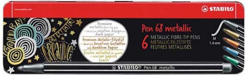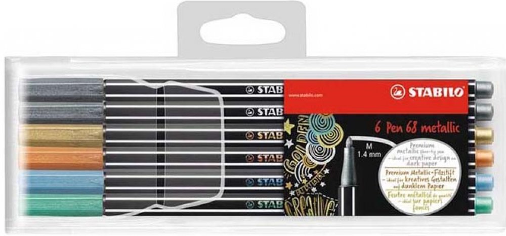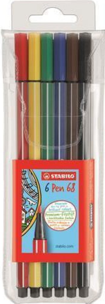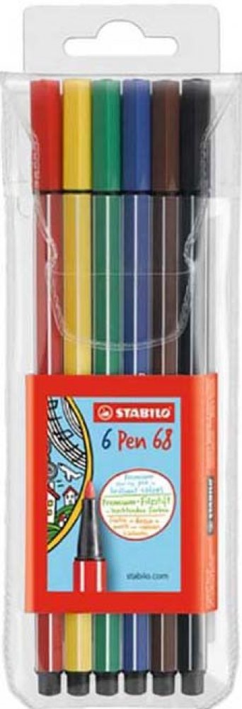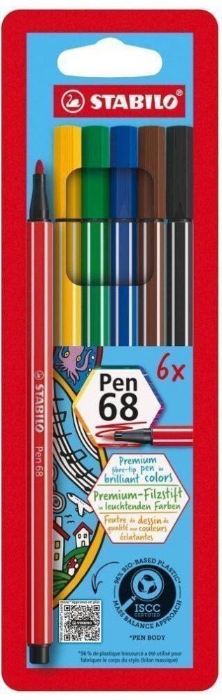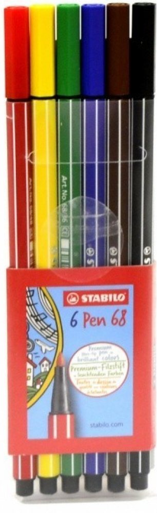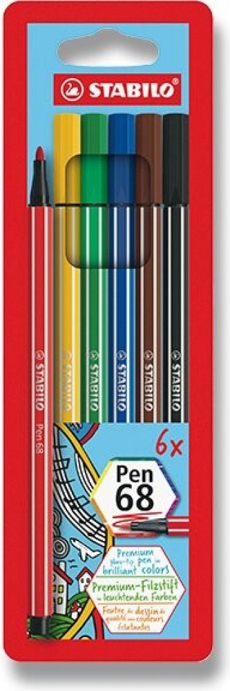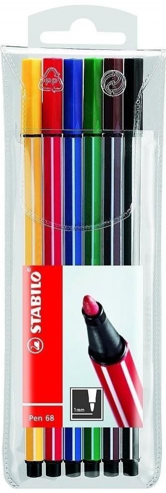 Publikace: Fixa STABILO Pen 68 sada 6 ks v plastovém pouzdru - neuveden. Stabilo Pen 68 - 6 ks Wallet - 6806/PL. Klasický šestihranný design signalizuje již na první pohled kvalitu STABILO. Sada 6 fixů s vláknovým hrotem a intenzivními barvami pro silné čáry a velké plochy. Oblíbený fix na kreslení, podtrhávání a vybarvování. Robustní Medium hrot (šíře stopy cca 1 mm) pro rovnoměrnou aplikaci inko...