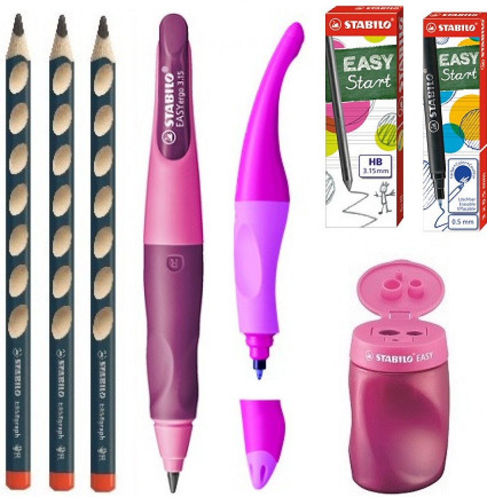Balíček obsahuje:Ergotužka se zářezy 3 ksErgotužka STABILO Easyergo 3.15 (5-7 let)Náhradní tuhy STABILO EASYergo 3.15 Ořezávátko STABILO EASY sharpenerErgonomické pero STABILO Easy Original (v případě zájmu o barvu Metallic nebo Holograph zadejte typ pera v poznámce)Náhradní náplně do STABILO Easyoriginal 0,5 mmUšetříte 33 Kč a čas zbytečným klikáním na jednotlivé produkty!