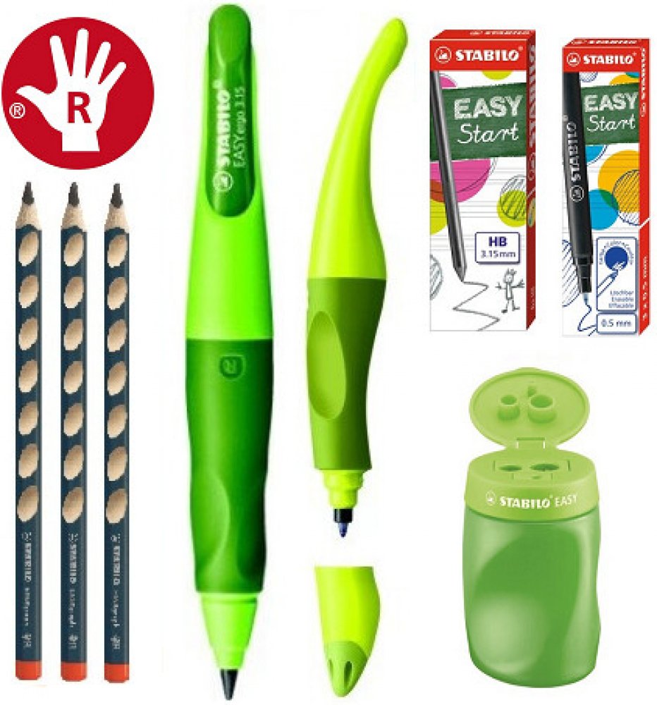 Balíček obsahuje:Ergotužka se zářezy 3 ksErgotužka STABILO Easyergo 3.15 (5-7 let)Náhradní tuhy STABILO EASYergo 3.15 Ořezávátko STABILO EASY sharpenerErgonomické pero STABILO Easy Original (v případě zájmu o barvu Metallic nebo Holograph zadejte typ pera v poznámce)Náhradní náplně do STABILO Easyoriginal 0,5 mmUšetříte 33 Kč a čas zbytečným klikáním na jednotlivé produkty!