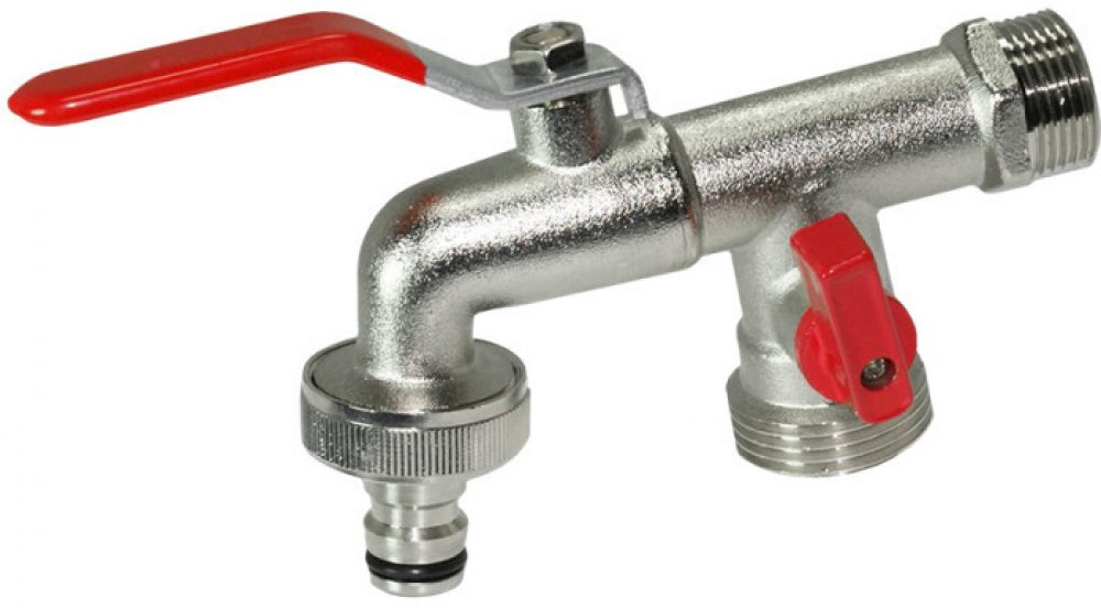 Kulový ventil s dvojitým vývodem se používá k odvádění nebo uzavírání plynných nebo kapalných médií. Kulové ventily se používají především v chemickém průmyslu pro procesní proudění nebo ve strojírenství. Při použití v zahradě se tento kohoutek používá k zavlažování. Praktické dvojité připojení umožňuje snadné vytvoření dalšího vývodu. Například můžete snadno uzavřít přívod vody do zahradní hadice a zároveň naplnit konvici.