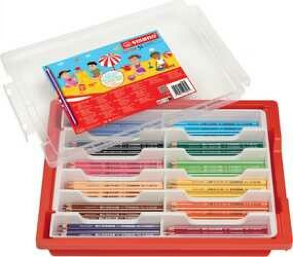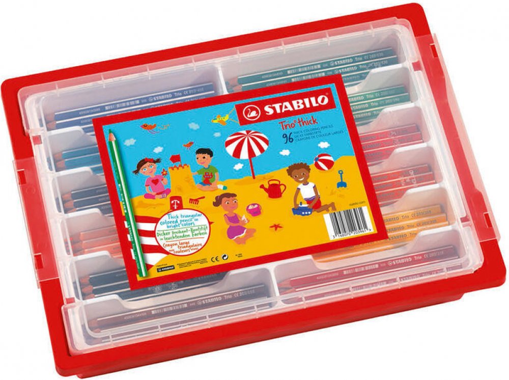 STABILO Trio hrubé pastelky jsou ideální pro malé umělce, kteří si rádi kreslí. STABILO Trio hrubé mají trojhranný tvar a jsou navrženy tak, aby se dětem dobře drželi a pomohli naučit je správně používat psací potřeby. Typickým znakem je trojhranný tvar, který se dobře drží a navádí ke správnému úchopu. Mají intenzivní výdej barvy. Box 12 různých barev, 96 ks pastelek.