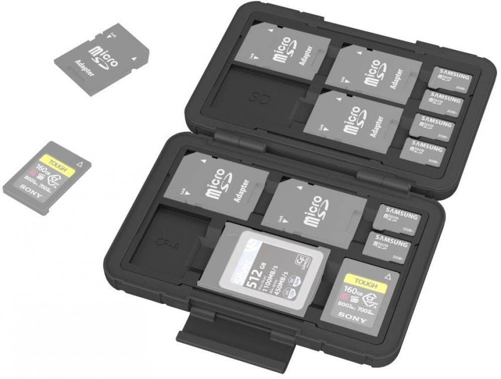 Úložná krabička SmallRig 15in1 pro paměťové karty je vysoce efektivní a kompaktní řešení pro organizaci a uložení vašich paměťových karet. Vyrobená z odolného silikonu a PC materiálu, tato krabička je navržena tak, aby vaše karty byly v bezpečí a chráněny, a zároveň nabízí lehký a přenosný design. S hmotností pouhých 120 g a rozměry 106×76×18,5 mm je snadno přenosná a pohodlně se vejde do vaší tašky, fotoaparátové brašny nebo dokonce kapsy.Tato krabička na paměťové karty pojme až 15 karet, což poskytuje všestranné možnosti ukládání. Je kompatibilní s 6 SD kartami, 6 TF kartami, 2 CF-A kartami a 1 CF-B kartou, což ji činí ideální pro fotografy, kameramany a každého, kdo často používá různé typy paměťových karet. Krabička zajišťuje, že vaše karty jsou přehledně organizovány, chráněny před prachem a poškozením a snadno dostupné, kdykoli je potřebujete.Ať už jste na cestách nebo pracujete na velkém projektu, úložná krabička SmallRig 15in1 pro paměťové karty je nezbytným doplňkem pro bezpečné, organizované a rychle dostupné uchování vašich paměťových karet.