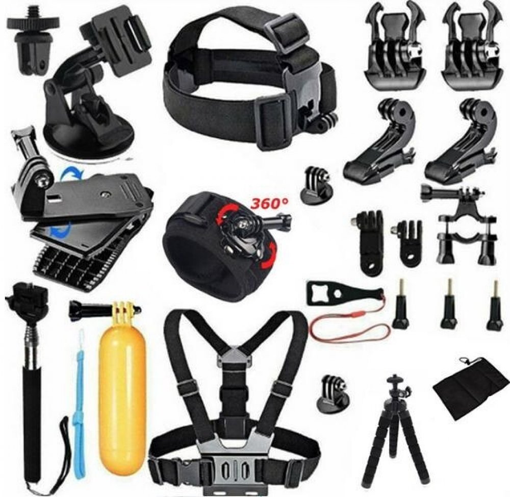 23dílná sada příslušenství pro akční kamery jako GoPro, DJI OSMO Action, Insta360 a další podobná zařízení. Obsahuje držáky, úchyty, popruhy a další doplňky pro různé způsoby uchycení a použití kamery. Ideální pro sportovní aktivity, cestování a outdoorové nat
