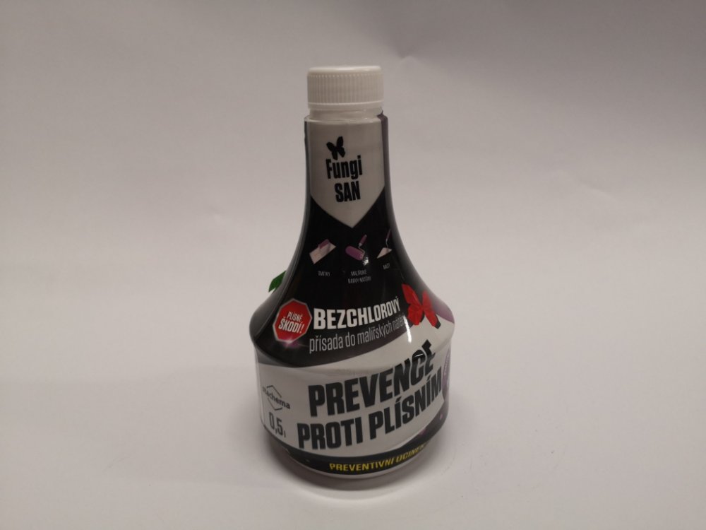 Bezchlorová prevence vzniku plísní - přísada do vodou ředitelných nátěrových hmot, malířských nátěrů, omítek a jiných minerálních stavebních materiálů. Díky svému složení je Fungisan Super šetrný pro lidský organizmus a přitom velmi účinný.Ve srovnání s přípravky na bázi chloru vykazuje dlouhodobější a intenzívnější účinky. Přípravek nezapáchá a ve stavebních materiálech nevznikají soli vázající vodu. Vhodný i pro vysoce zátěžové podmínky.