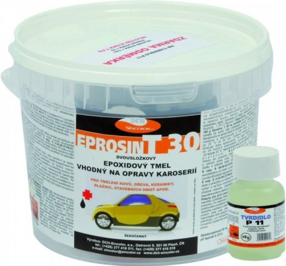 K opravě zkorodovaných prahů automobilů se zachováním pevnosti. K zatmelování a lepení kovů, betonu, keramiky, skla, sklolaminátů, polystyrenu, dřeva, dřevovláknitých desek, v modelářství apod. Tmel ani natužená směs před aplikací nesmí být zřeďován přídavkem jakéhokoliv rozpouštědla či ředidla. Spotřeba:8,5 kg/m² při výšce vrstvy 5 mm Tužení:Eprosin T 30 : Tvrdidlo P 11 poměr hmotnostní 100 : 2,6...