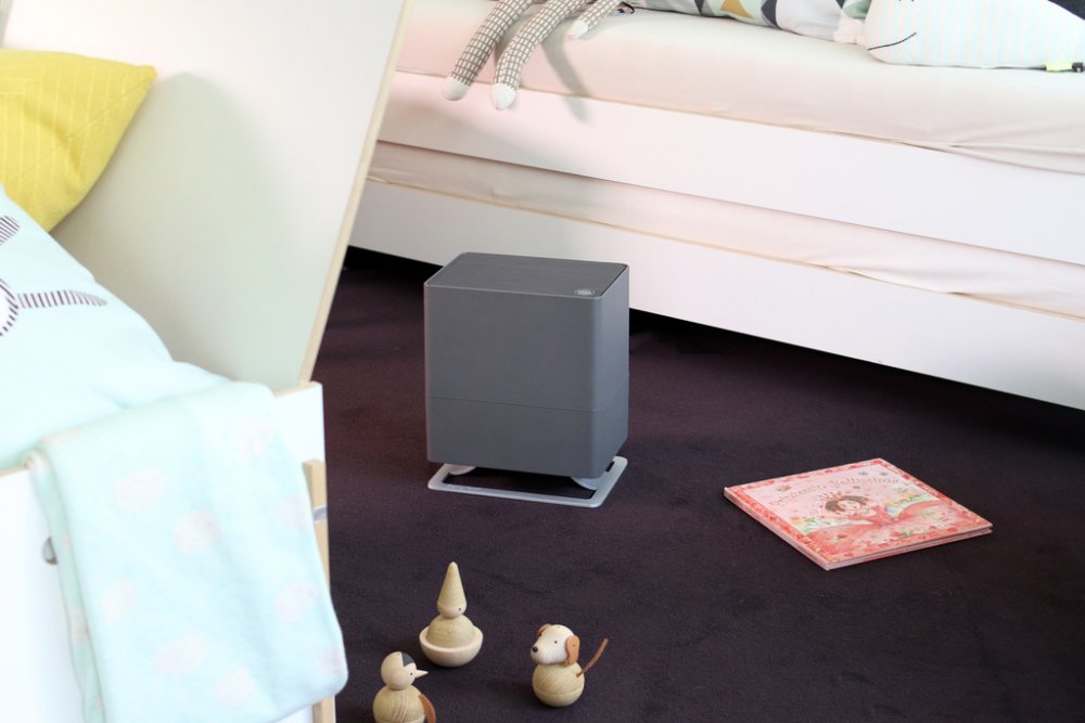 Zvlhčovač vzduchu Oskar Little je vybaven inovativním antibakteriálním filtrem z rostlinných a textilních vláken bez použití plastů. Filtr pohlcuje vodu a ventilátor umístěný v horní části jednotky zajišťuje rozptýlení vlhkosti. V balení najdete také postříbřenou dezinfekční kostku Water Cube, která zajišťuje hygienické zvlhčování bez množení bakterií.