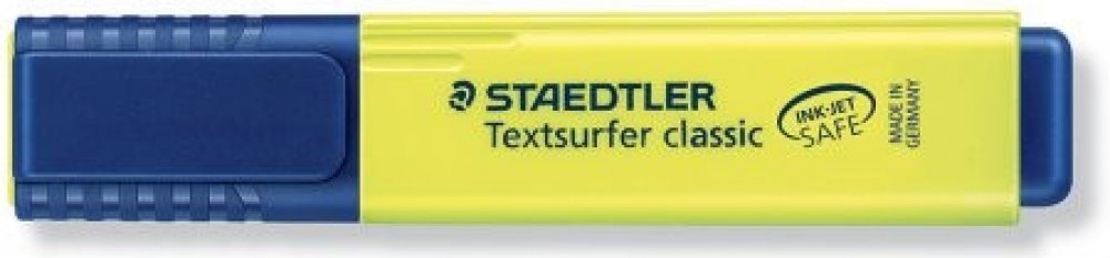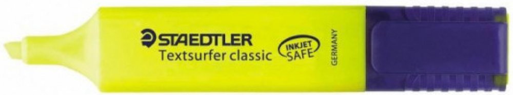 Zvýrazňovač s velkým zásobníkem inkoustu pro dlouhou životnost. Pigmentový rychleschnoucí inkoust, odolný proti blednutí na světle, vhodný na všechny druhy papíru včetně faxového. Nerozmazává dokumenty z inkoustových tiskáren a psané rukou. Vybaven ventilačním uzávěrem. Klínový hrot, šíře stopy je 2-5mm. Barva žlutá.