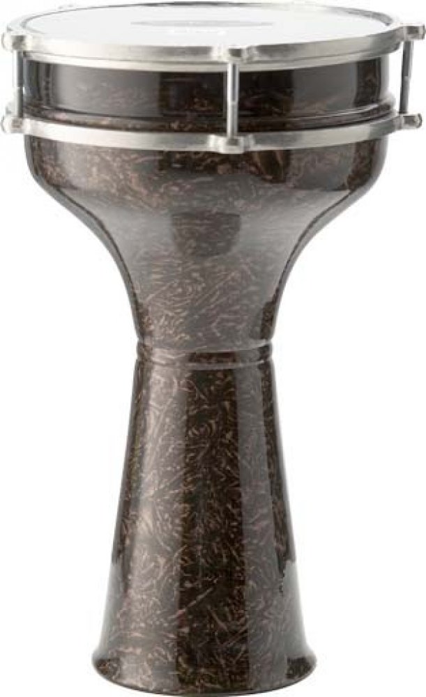 Darbuka 20 cm aluminium, výška 38 cm, ladění na 5 šroubů, tmavá barva.