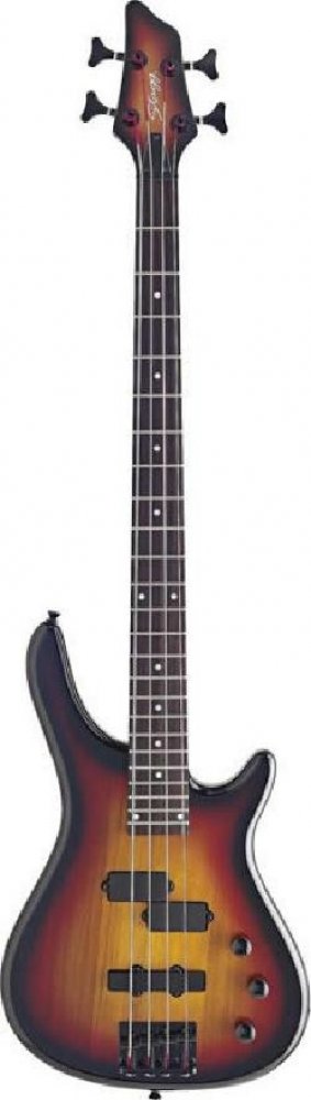 Elektrická baskytara typu Fusion. Tělo masiv olše, šroubovaný krk javor, menzura 867 mm, hmatník palisandr, 24 pražců, kobylka klasická JB, černá mechanika die-cast, 1x snímač JB, 1x snímač PB, 2x ovládání hlasitosti, 1x ovládání tónu. Barva sunburst.