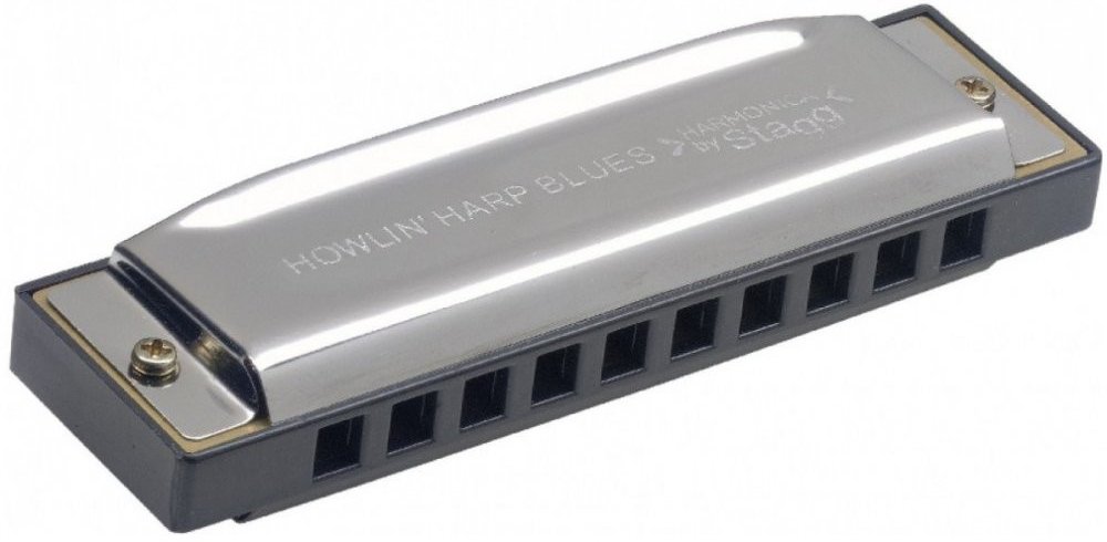 Bluesová diatonická foukací harmonika, ladění G, 10 otvorů / 20 tónů, měděné plíšky 0,9 mm.