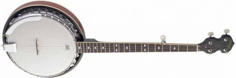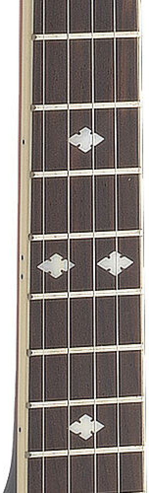 Pětistrunné banjo. Tělo mahagon, buben kovový odlitek na 30 háčcích, vrchní blána Remo 11", krk nato, hmatník palisandr, 22 pražců, menzura 660 mm, kobylka javor/eben, otevřená mechanika s perleťovými knoflíky.
