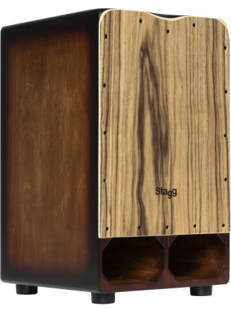 Cajon s ozvučnými otvory v podobě basreflexu pro zdůraznění zvuku.