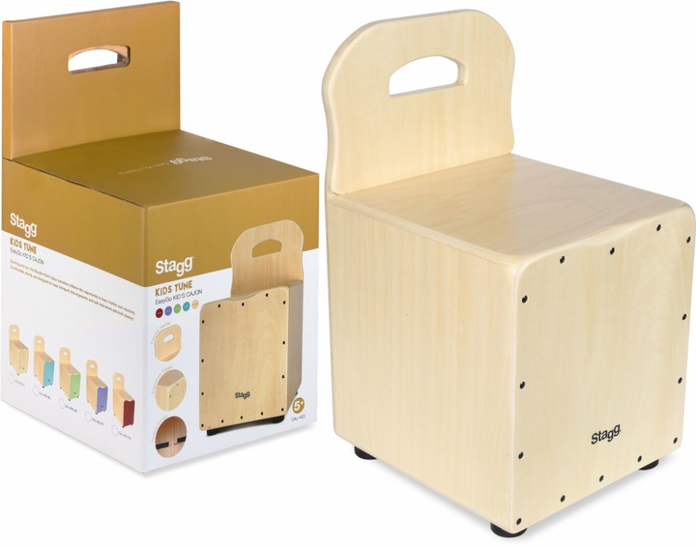 Dětský cajón s přírodní ozvučnou deskou a zádovou opěrkou. Tělo nástroje je vyrobeno z lipové překližky. Protiskluzné pryžové nohy, laditelné strunění (2 páry strun ve tvaru "V"), ergonomicky tvarované a zaoblené hrany, opěrka s vyříznutým madlem pro snadnou manipulaci. Cajón je dodáván včetně ladícího klíčku.
