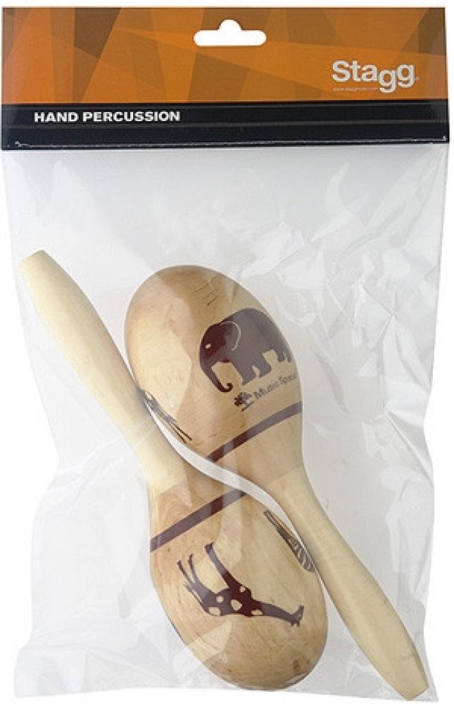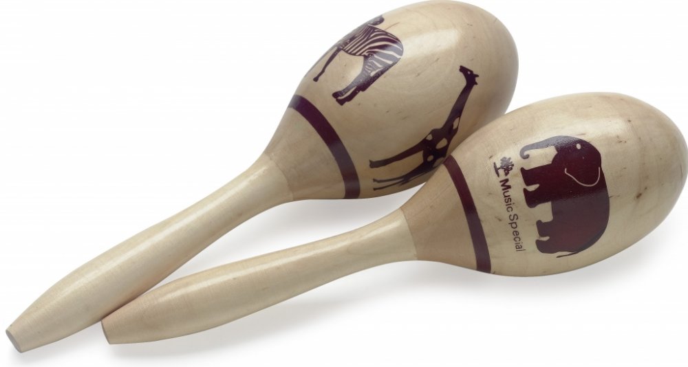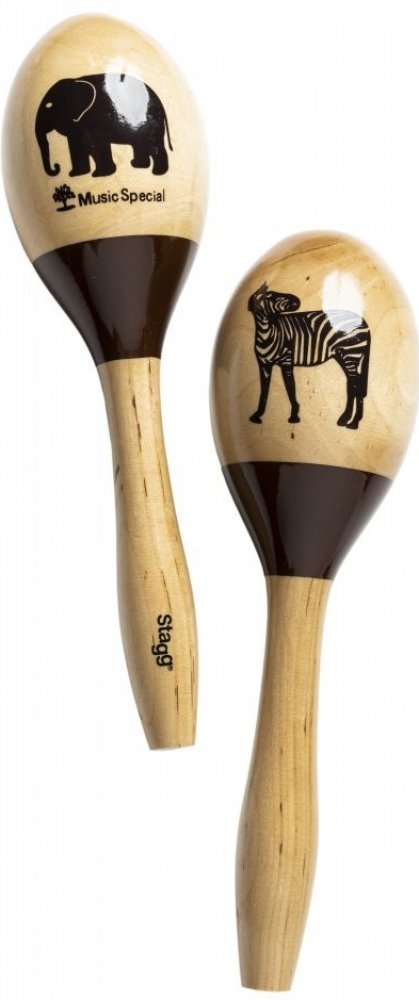 Pár dřevěných maracas ve stylu Africa. Délka 23 cm. Rukojeť z topolu, březová chrastítka.