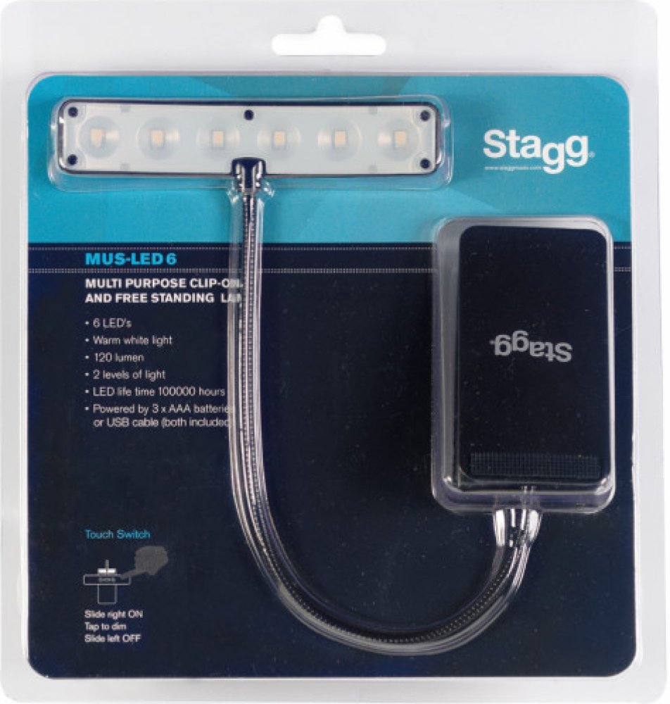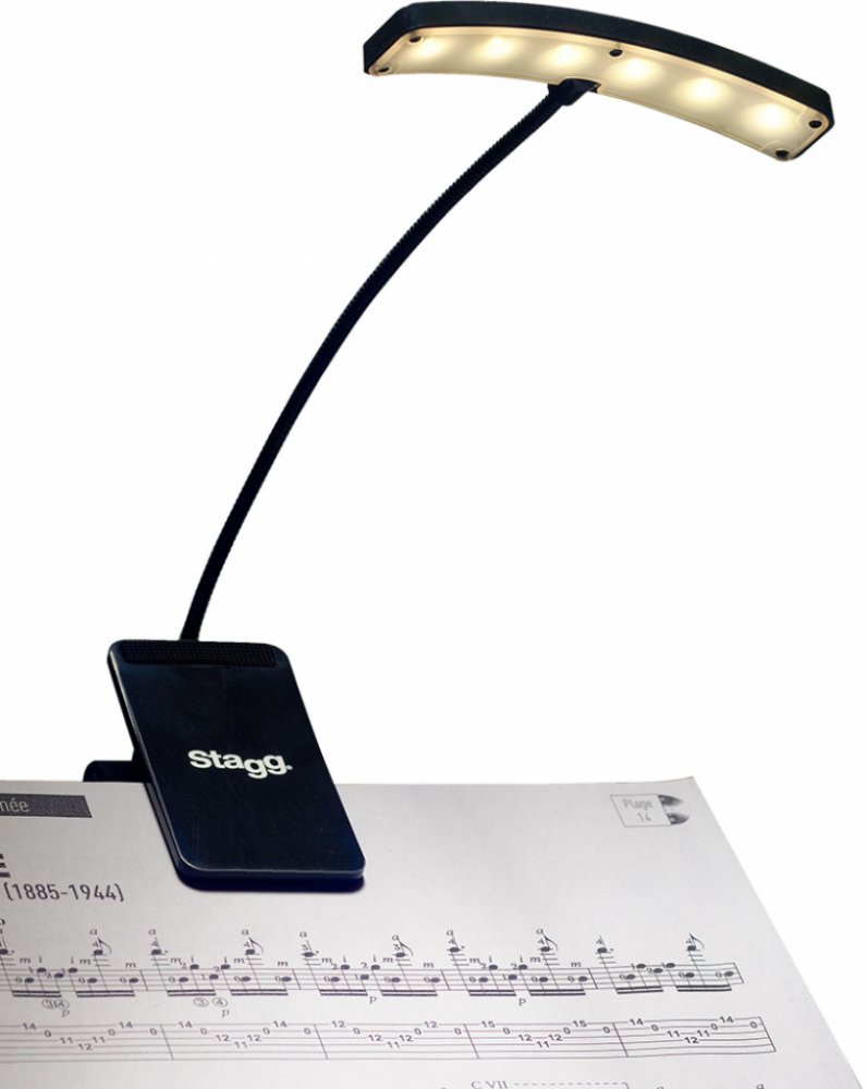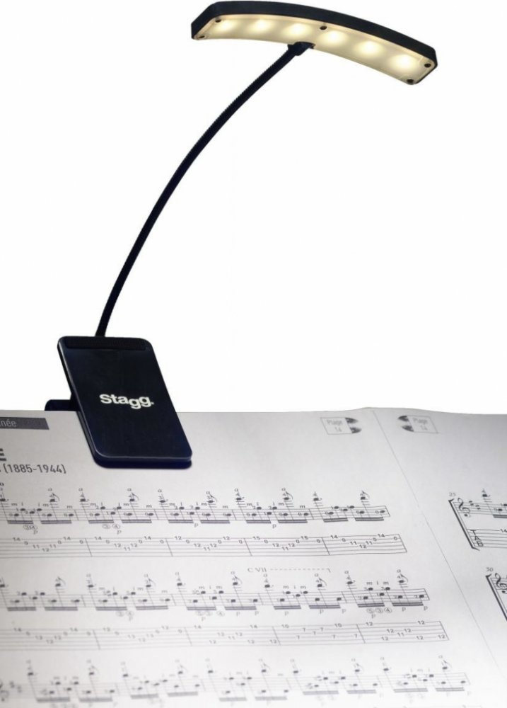LED lampička pro muzikanty nebo DJe. Pružné rameno (husí krk) 28cm. Deset silných LED. Spínač s dvoustupňovým nastavením jasu. Připevňovací svorka s pogumovanými čelistmi. Nízká spotřeba. Dodáváno vč. baterií (3x AA/1.5V) a adaptéru 5V DC.