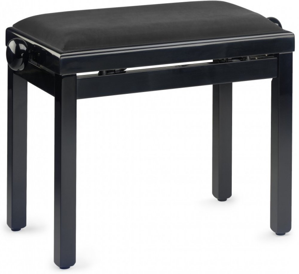 Stolička ke klavíru, nastavitelná výška 49 - 57 cm. Rozměry sedáku 54 x 32 cm, nosnost 200 kg, hmotnost 6,5 kg. Barva lesklá černá, sedák černý jemný samet.