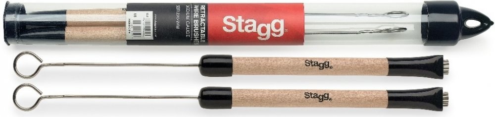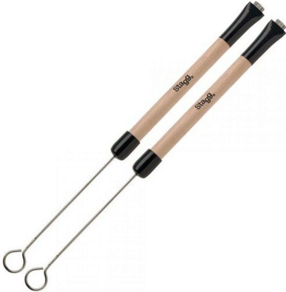 Teleskopické drátěné metličky s dřevěnou rukojetí. Zatahovací ocelové dráty. 3 polohy, kovové táhlo pro nastavení délky "štětce". Může být také použito k hraní na činely. Celková délka: 340 mm, délka "štětce": 125 mm. Max. rozpětí: 95 mm.