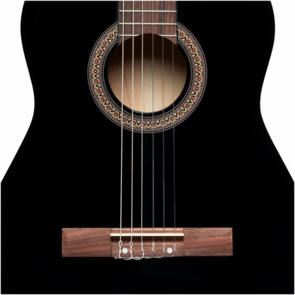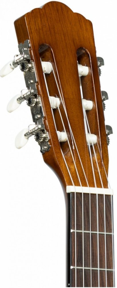 Klasická 3/4 kytara (25025653) v sadě s chromatickou klipovou ladičkou a nylonovým pouzdrem. Vrchní deska lípa, spodní deska a luby lípa, krk nato s kovovou výztuhou, hmatník a kobylka pau ferro, mechanika klasická, niklovaná. Barva přírodní lesklá.