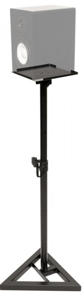Sada dvou stojanů po studiové monitory. Trojúhelníková základna (3 x 44 cm), gumové nožky s vyrovnávacími kovovými hroty, nastavení výšky v 6-ti polohách v rozmezí 80 - 130 cm, robustní naklápěcí kovová deska (23 x 23 cm) se dvěma protiskluzovými pásky, které zároveň tlumí vibrace při hudební produkci. Max. nosnost 40 kg, kovové provedení, hmotnost stojanu 3,9 kg. Vhodné pro domácí použití, studio...