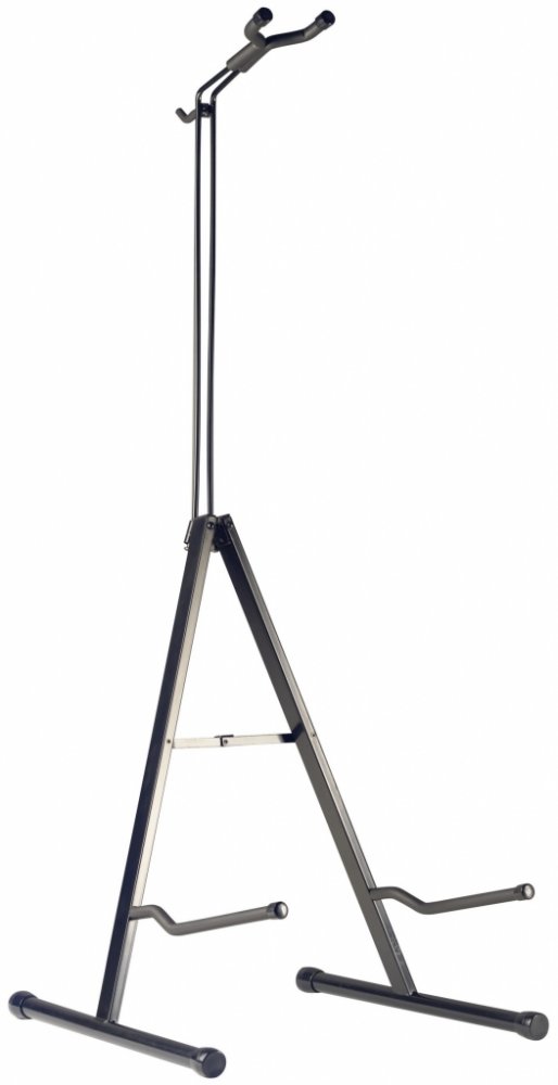 Stojan na kontrabas s háčkem pro zavěšení smyčce. Nastavitelná výška do 136 cm. Barva černá