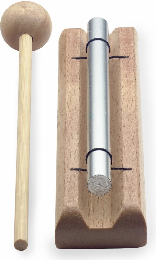 Stolní zvonek, jeden tón (C). S paličkou. Rozměry: 17,3 cm x 3,6 cm.