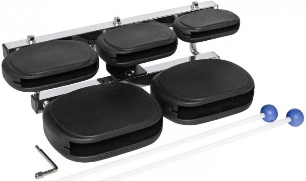 5-ti dílná sada temple bloků Stagg je vyrobena ze syntetických materiálů, které poskytují jasný a čistý zvuk, vynikající trvanlivost a velkou odolnost vůči změnám teploty a vlhkosti. Dodává se s dvojicí paliček, šestihranným klíčem a nastavitelnou svorkou, která umožňuje připevnění na jakýkoli stojan na bicí nebo činely. Stojan není součástí dodávky. Přibližné ladění Eb/ F/ B/ Db/G. Rozměry (š x h x v) 44 x 23 x 13 cm. Hmotnost 3,75 kg.Materiál: polypropylen a uhlíková vlákna