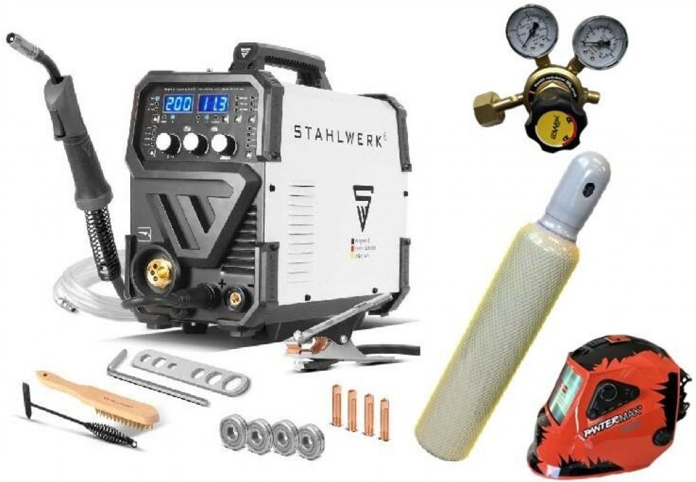 MIG/MAG synergická svářečka s pulzem od Stahlwerku. Mašinka vhodná pro karosáře ✅sváří metodou MIG/MAG, MMA a Lift TIG. Svaříš s ní ocel, nerez a hliník ✅. Mašinka s velkou výbavou a dobrými funkcemi. Opět jednoduché ovládání na přehledném panelu. Všechny funkce jsou přehledně uspořádané. MIG pulzní režim je vynikající při sváření hliníku. Tato svářečka je vhodná pro sváření tenkých plechů právě díky pulzům. Funkce SPOT se hodí karosářům pro sváření (bodování) tenkých plechů, díky ní jsou body rovnoměrné. Svářečka dodává skutečných 200A výkonu. Čtyř kladka pro hladký posuv drátu a krásná vychytávka světlo uvnitř svářečky při výměně cívky.