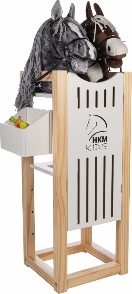 Stáj pro dva koníky Hobby Horse vyrobená z MDF a melaminu. Dveře stáje lze otevřít a opět zavřít pomocí magnetu. Vybavena odnímatelným žlabem na krmení, policí a čtyřmi držáky k zavěšení příslušenství ke koníkům. Stáj splňuje evropské požadavky na testování podle pokynů pro hračky. Rozměry jsou 34 cm x 32 cm x 85 cm (délka x šířka x výška).