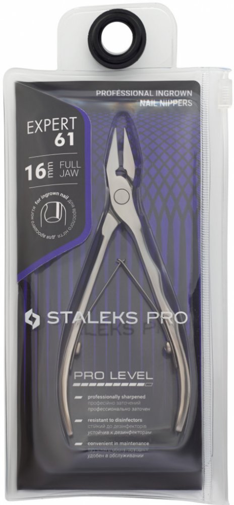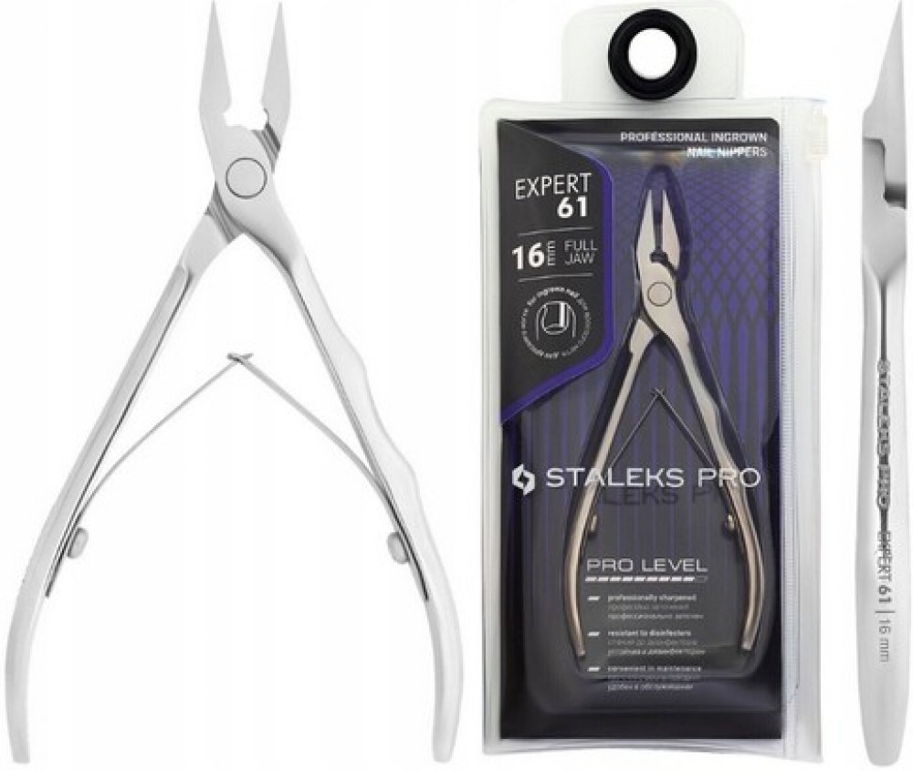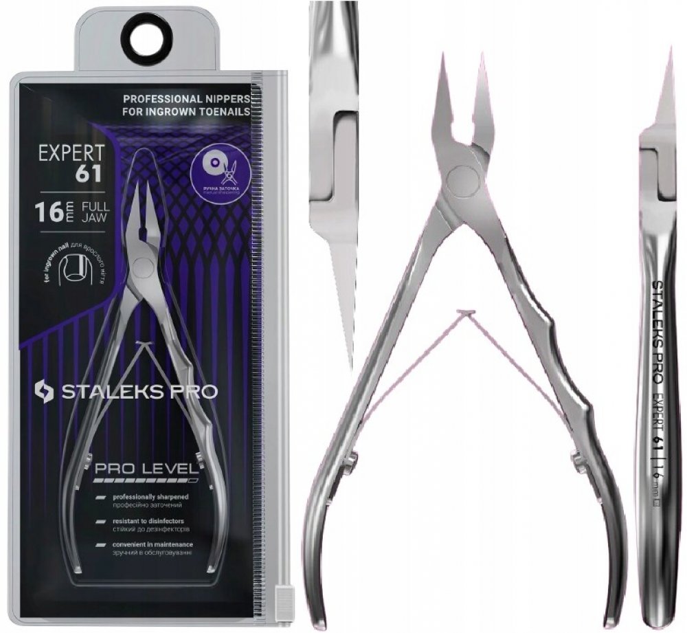 Kleště na zarostlé nehty Staleks Pro Expert NE-61-16 jsou silnější a odolnější než kleště na kůžičku. Tyto kleště na nehty lze použít na tvrdé a silné nehty při pedikúře. Mají rovné břity bez sklonu, tenké hroty a úzkou pracovní část, což umožňuje přesné a pohodlné odstranění zarostlých nehtů. Jsou vyrobeny z vysoce kvalitní nerezové oceli, takže je lze dezinfikovat a sterilizovat.