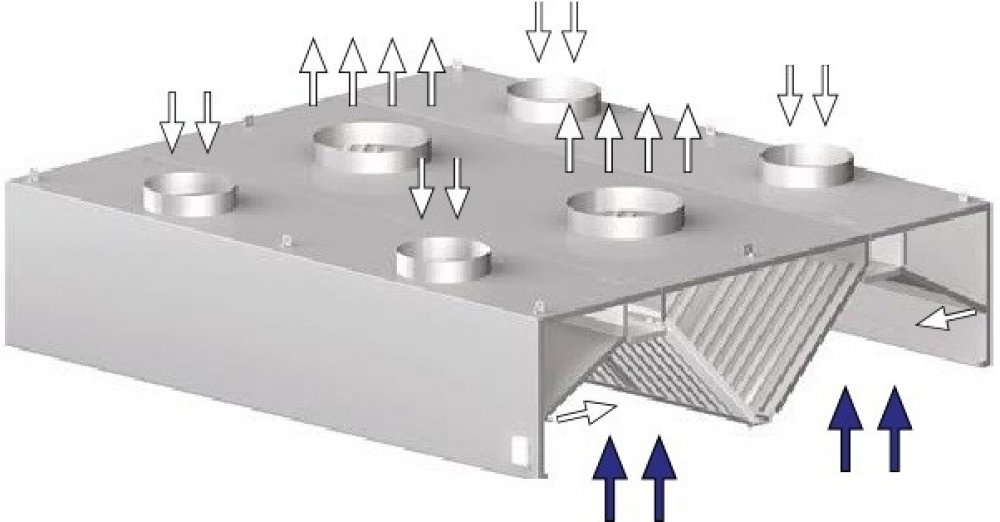 STALGAST Centrální skříňová digestoř, indukční 3500x2200x450 mm